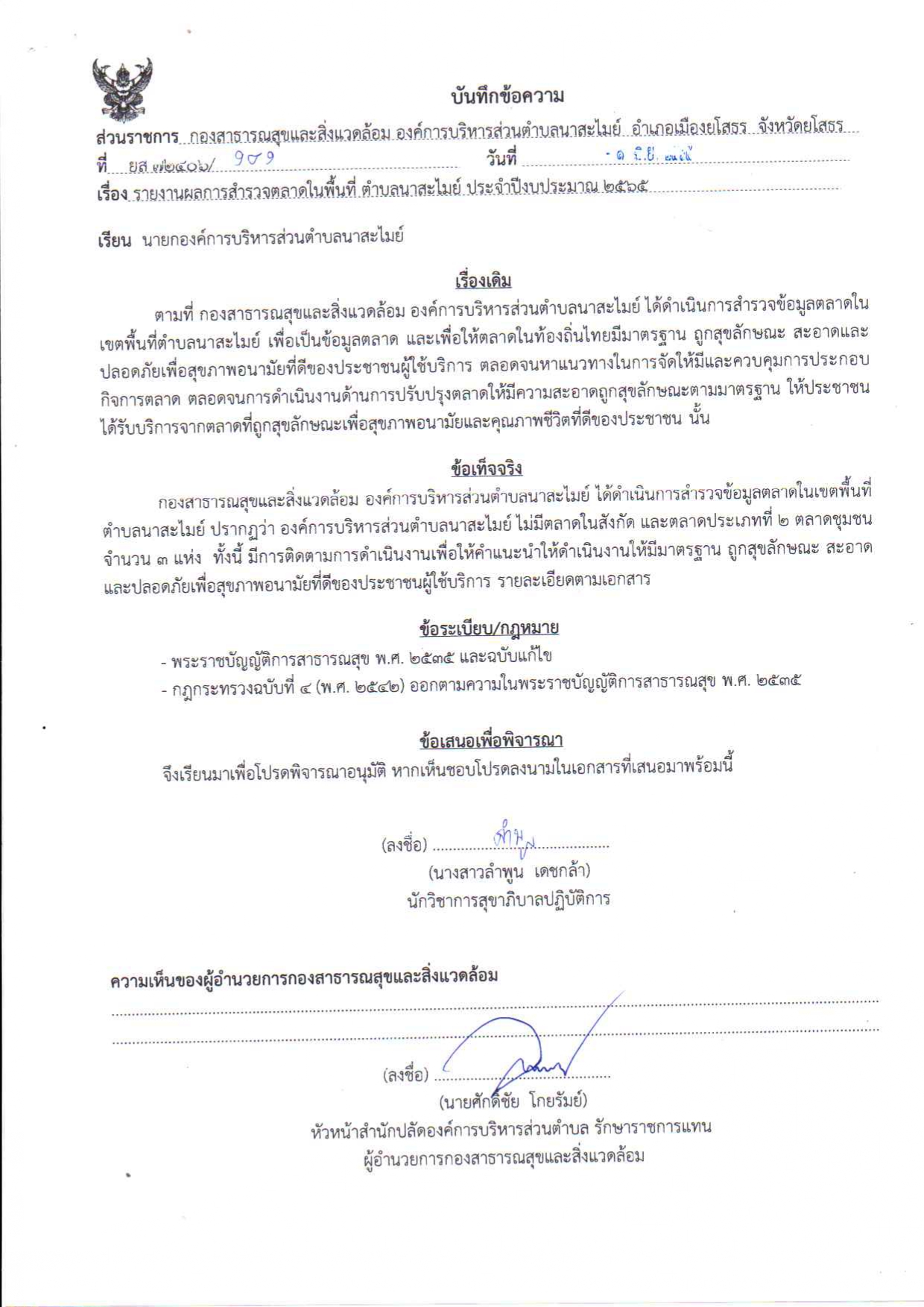 ประชาสัมพันธ์การสำรวจตลาดในพื้นที่ตำบลนาสะไมย์ 2565