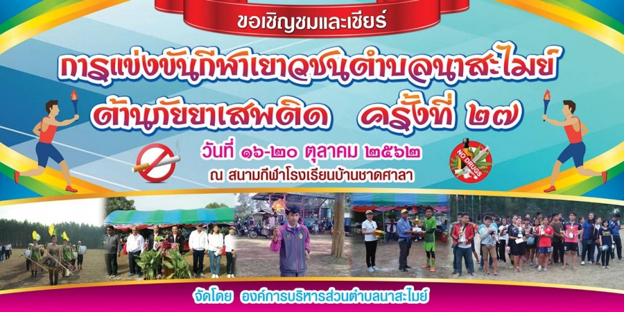 ขอเชิญชวนประชาชนร่วมชมและเชียร์ การแข่งขันกีฬาเยาวชนตำบลนาสะไมย์ต้านภัยยาเสพติด ครั้งที่27