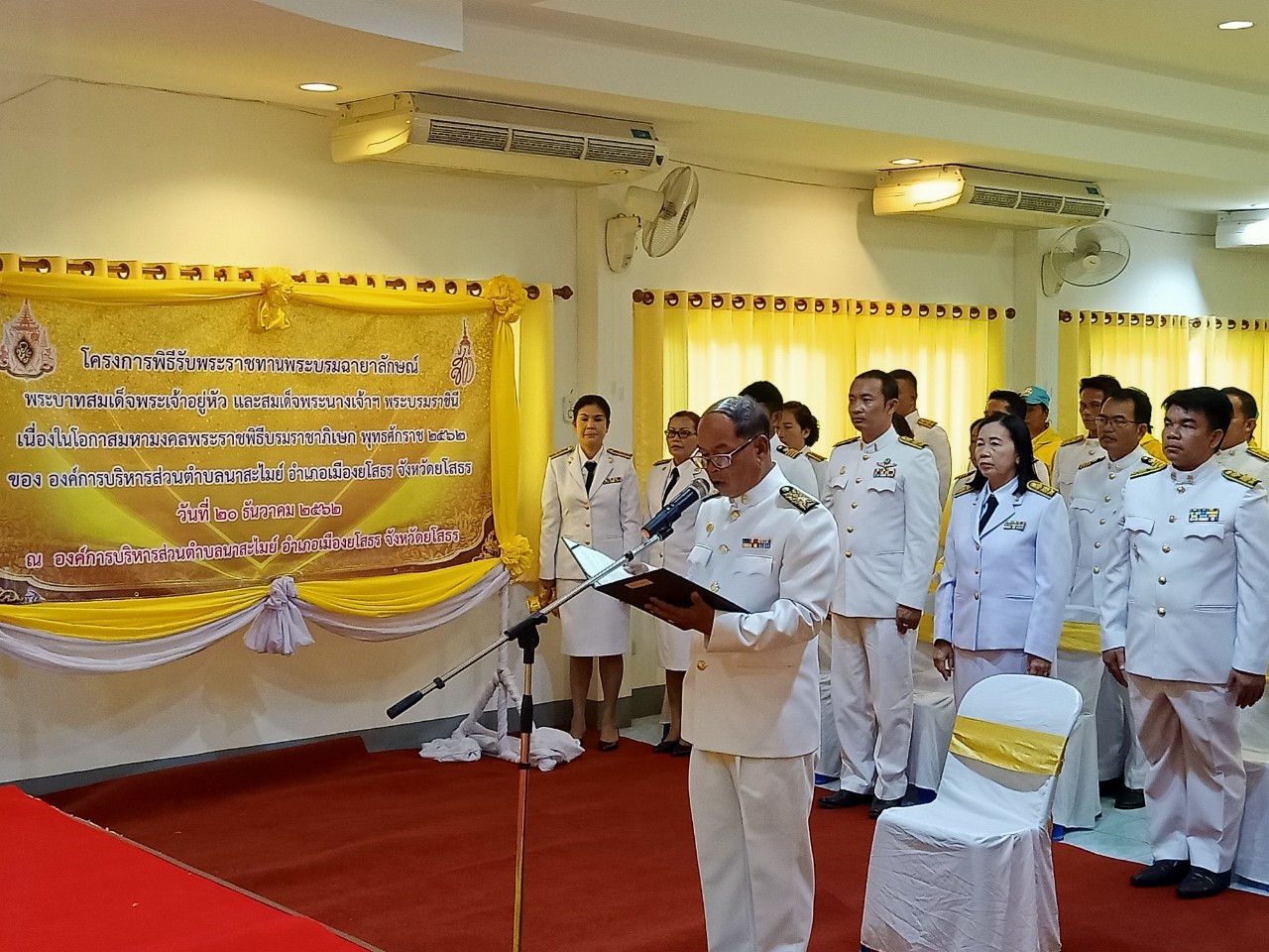 วันศุกร์, 20 ธันวาคม 2562 15:44ด้วยกระทรวงมหาดไทย ได้รับพระราชทานพระบรมราชานุญาตให้เชิญพระบรมฉายาลักษณ์พระบาทสมเด็จพระเจ้าอยู่หัว ที่ฉายกับสมเด็จพระนางเจ้าฯ พระบรมราชินี ไปจัดพิมพ์เป็นแผ่นภาพ สำหรับมอบแก่ประชาชนทุกครัวเรือนในสังกัดอปท. ที่ทำการอปท. โรงเรียน และศพด.ในสังกัดอปท.เพื่อให้ประชาชน หน่วยงาน และองค์กรต่าง ๆ ได้น้อมสำนึกในพระมหากรุณาธิคุณอันหาที่สุดมิได้และเฉลิมพระเกียรติพระบาทสมเด็จพระเจ้าอยู่หัว เนื่องในโอกาสพระราชพิธีบรมราชาภิเษก พุทธศักราช 2562 องค์การบริหารส่วนตำบลนาสะไมย์ จึงได้ดำเนินโครงการพิธีรับพระราชทานพระบรมฉายาลักษณ์พระบาทสมเด็จพระเจ้าอยู่หัวและสมเด็จพระนางเจ้าฯ พระบรมราชินี เนื่องในโอกาสมหามงคลพระราชพิธีบรมราชาภิเษก พุทธศักราช 2562 ขึ้น ในวันที่ 20 ธันวาคม 2562 เวลา 09.00น. เป็นต้นไป ณ องค์การบริหารส่วนตำบลนาสะไมย์ อำเภอเมืองยโสธร จังหวัดยโสธร