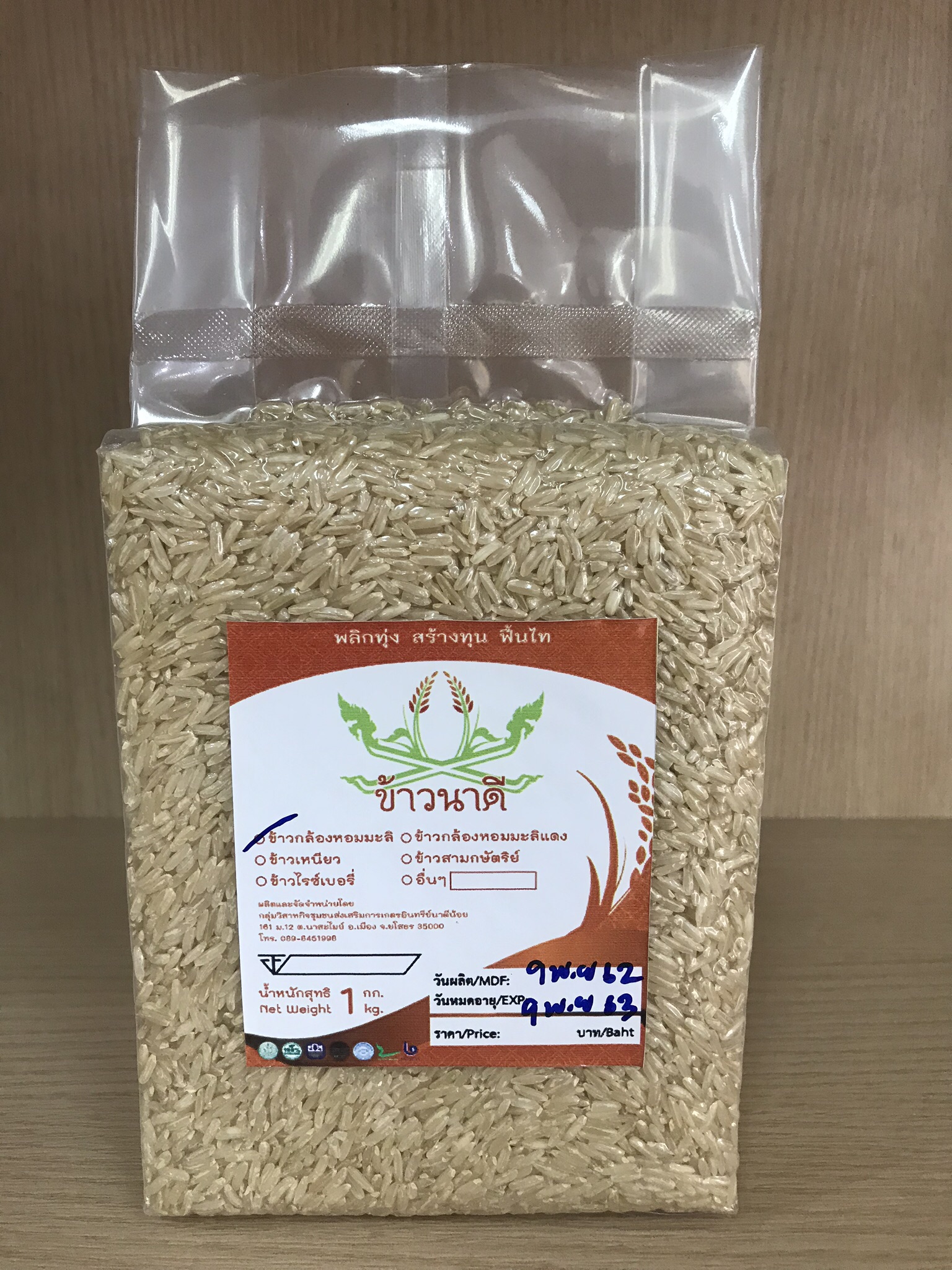 กลุ่มวิสาหกิจชุมชนส่งเสริมการเกษตรอินทรีย์นาดีน้อย หมู่ที่ 12 ตำบลนาสะไมย์ อำเภอเมืองยโสธร จังหวัดยโสธร ส่งเสริมผลิตภัณฑ์แปรรูปข้าว